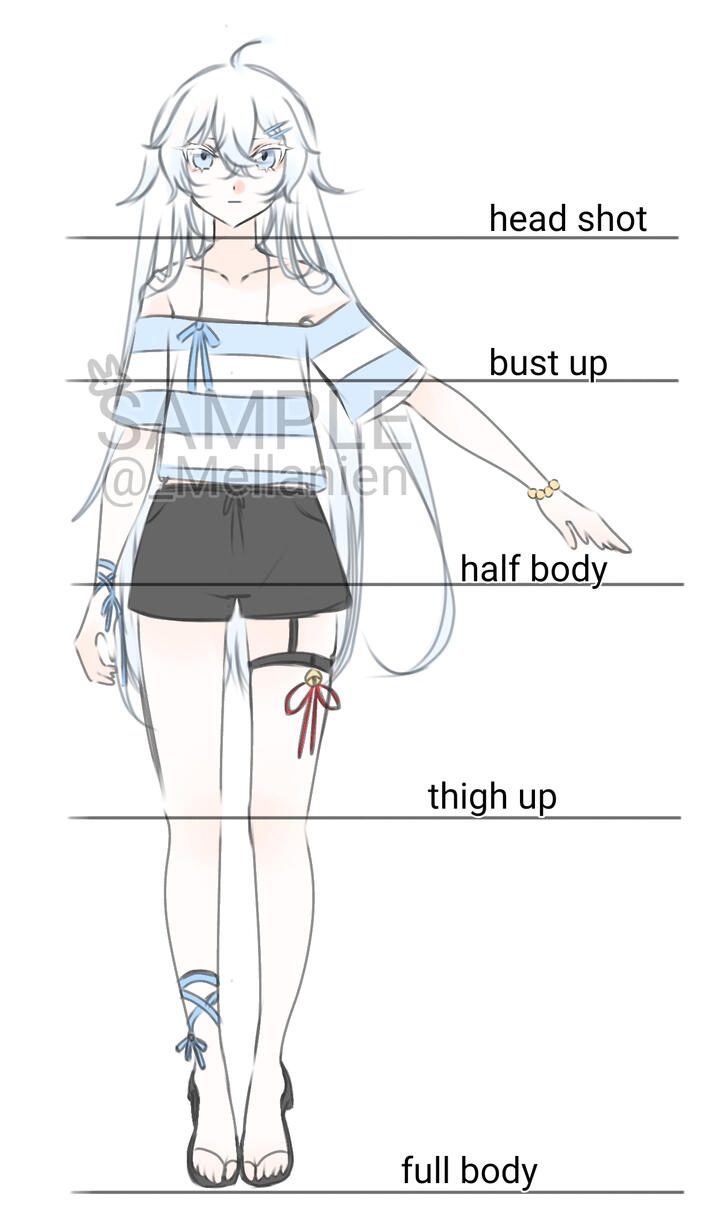 These references might not look like the final illustration as some are personal drawings or on the older side.There are commission art posts on my twitter for more examples.Feel free to ask me for more specific examples through my contact information!